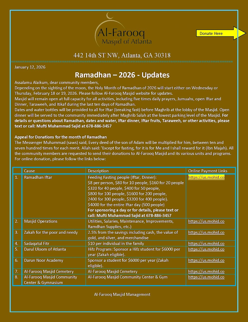 On behalf of The Atlanta Mosque Board,