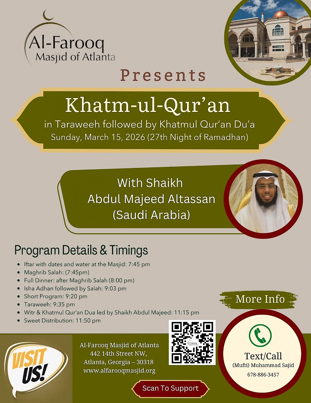 Khatm-ul-Qur'an & Du'a - Sunday, March 15, 2026 (27th Night of Ramadhan, 1447 Hijri)