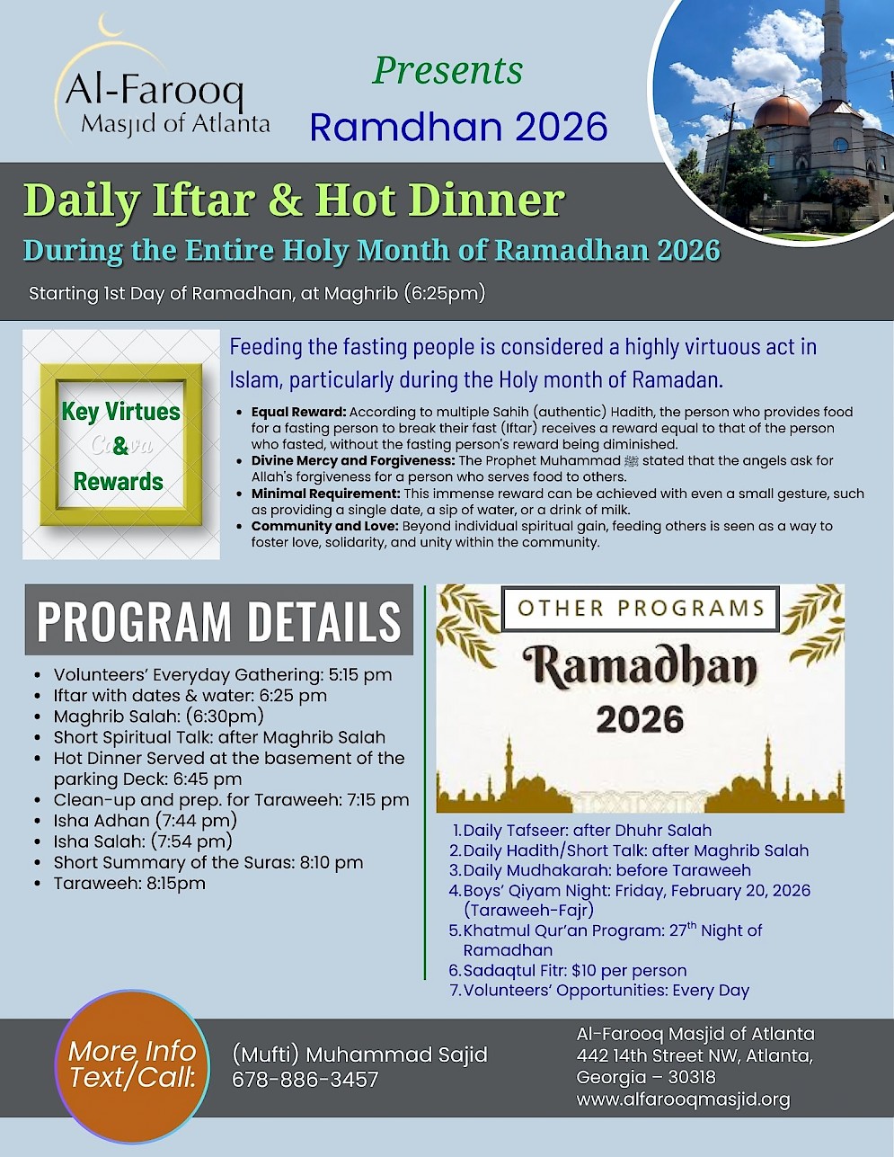 Please write a check to “Al-Farooq Masjid” and either put it within a donation box at the masjid or mail it to: