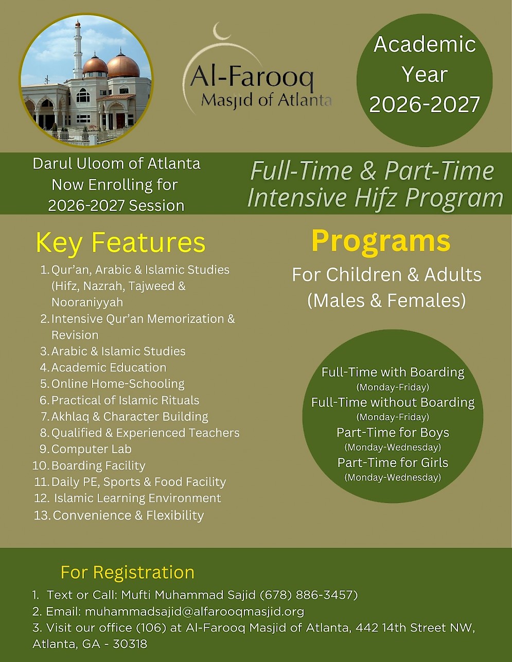 Imam/Administrator: (678) 886-3457 | Email: info@alfarooqmasjid.org